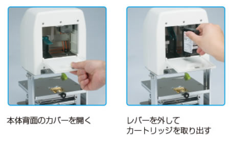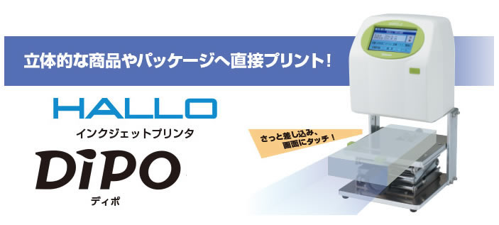 DiPO にパッケージを差し込み画面にタッチ(またはフットスイッチ)で、指定の位置にキレイなプリントができます。