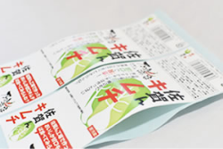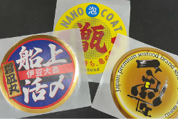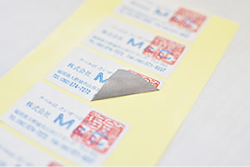 食品衛生法のポジティブリストに収載された粘着剤を使用し、食品に貼付可能なシールです。